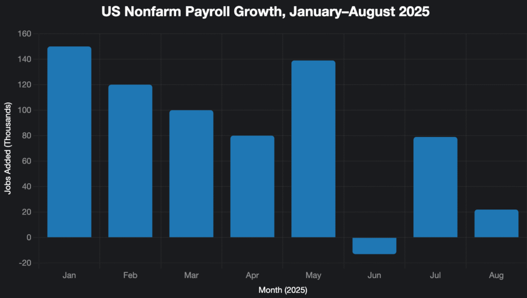 Chart: US Nonfarm Payroll Growth, January–August 2025