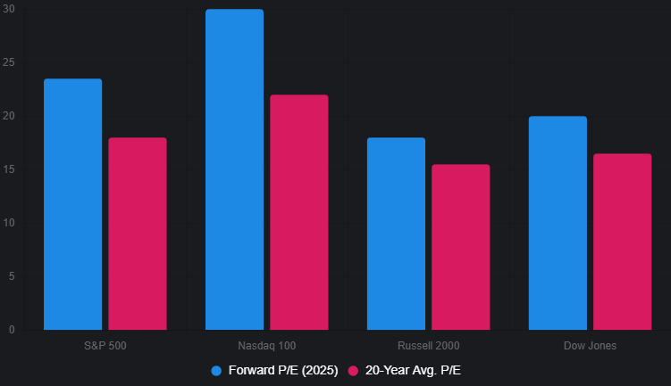 This detachment from fundamentals is evident in market data. The table below compares the forward P/E ratios of major U.S. indices in 2025 against their 20-year averages, highlighting the valuation stretch Niles critiques.