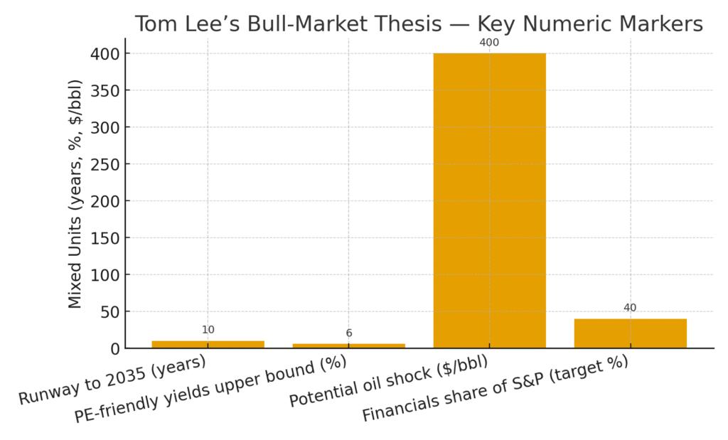 Demographics, yield math, and sentiment form the core of Tom Lee’s case for a secular upswing—while policy shocks and commodities define the downside risk.